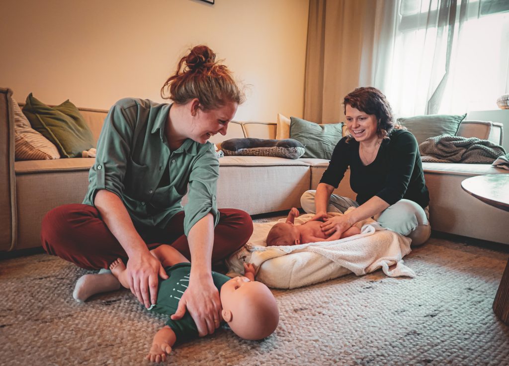 Tijdens de massagelessen leer ik jou hoe je jouw baby veilig en met vertrouwen kunt masseren. Ik doe de handelingen voor op een pop, terwijl jij naast mij jouw eigen baby masseert.